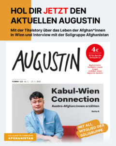 Die neue Ausgabe der Staßenzeitung Augustin handelt vom Leben als Afghan*in in Wien. Dazu gibt ein Interview mit der Soligruppe Afghanistan und unser Ali ist…